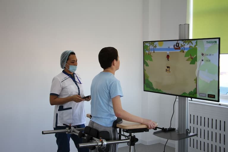 Орталықта науқас балаларға мамандандырылған оңалту көмектерін көрсету, оның ішінде, сумен емдеу, шунгит, сенсорлық, интерактивті, тұзды шахта бөлмелері қарастырылған. Сондай-ақ, емдік-дене шынықтыру, механотерапия және ойын залдары бар, логопед, дефектолог, психолог мамандары қызмет көрсетуде.
