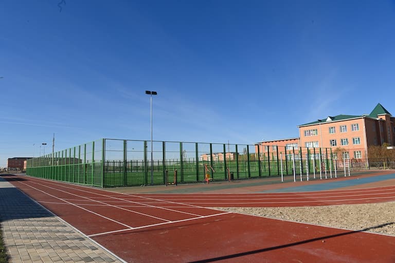 Алдымен 1500 орындық «Келешек мектебінің» құрылыс алаңында болды. Құрылыс толық аяқталған, ғимарат заманауи талаптарға сай салынған. Мұнда оқу кабинеттері соңғы үлгідегі құрал-жабдықтармен қамтылған, арнайы STEM-зертхана, кітапхана, спорт және акт залы, асхана бар. Бас мердігер «Integra Construction KZ», жобалаушы ұйым «Project Construction KZ», техникалық қадағалаушы «Самұрық Қазына Девелопмент» серіктестіктері. Нысан жақын күндері пайдалануға беріледі.