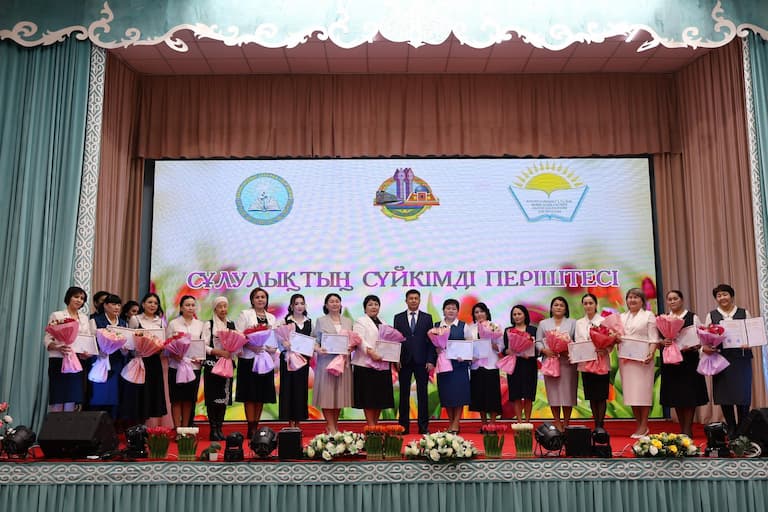 Марапаттау рәсімінен кейін, сахна төріне барша білім саласындағы нәзік жандылар қауымына арналған аудан әкімінің ықылас гүлі шығарылды.