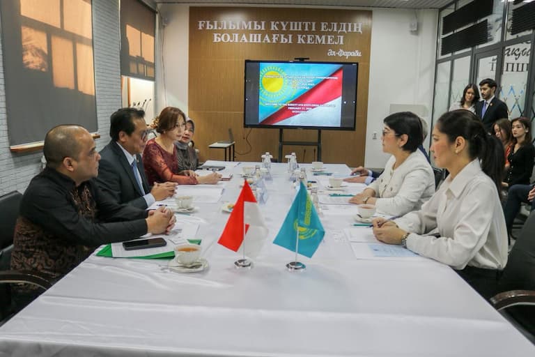 Қазіргі таңда университет Индонезия Республикасының екі жоғары оқу орнымен өзара ынтымақтастық туралы меморандумға қол қойған. Кездесу барысында тараптар алдағы уақытта тағы да бірқатар индонезиялық университеттермен әріптестік байланыс орнату жөнінде пікір алмасты.