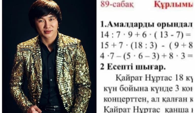 «Суретте көрсетілген «Құрылымы күрделі теңдеулер» тақырыбы бойынша берілген тапсырма – мұғалімнің қалыпты бағалауға әзірлеген жеке тапсырмасы. Ал қолданыстағы 3-сыныптың «Математика» оқулығында Қайрат Нұртас туралы тапсырма жоқ», - деп министрлік оқулықтың фотосын жіберді.