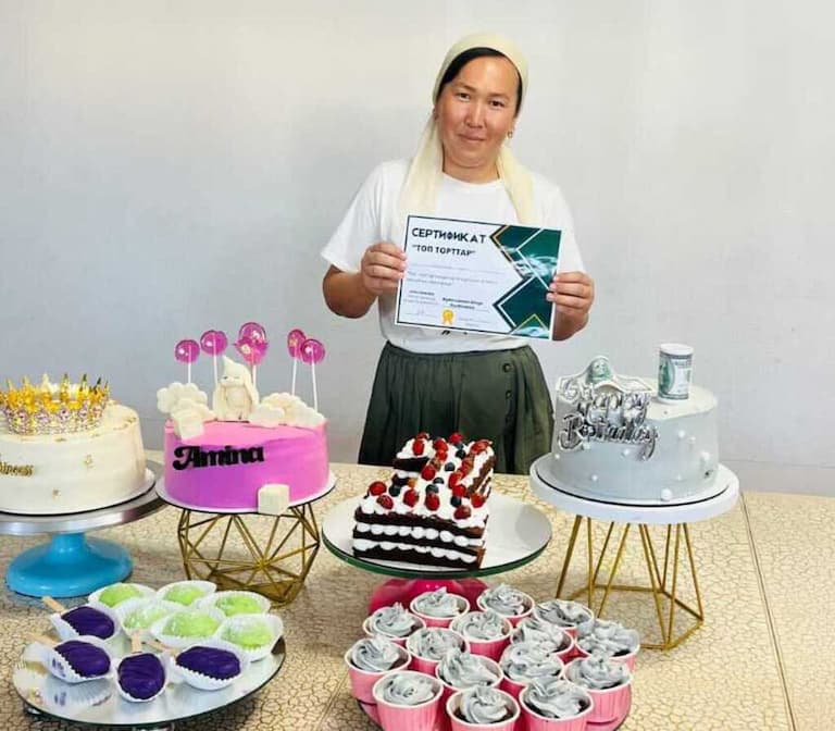 Шіркейлі ауылының тұрғыны, көпбалалы ана Лаура Өмірзақова бөлінген қаражатқа шағын кондитерлік цех ашуға қажетті құрал-жабдықтар сатып алды. Қазіргі таңда ол өз үйінде отбасылық шағын кәсіпті дөңгелетіп отыр.
