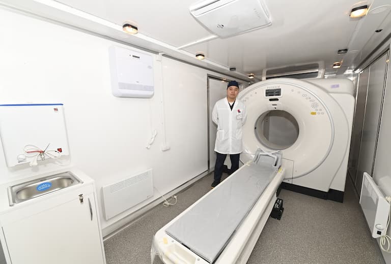 2 көліктен тұратын жылжымалы медициналық кешен томосинтез функциясы бар сандық маммографиялық жабдықпен, сарапшылық деңгейдегі ультрадыбыстық жүйемен және жоғары дәлдікпен зерттейтін компьютерлік томографпен жабдықталған. Екі құрал да Жапонияда жасалған. Мұндай кластағы және конфигурациядағы медициналық жабдық Қазақстанда алғаш рет қолданысқа берілуде.