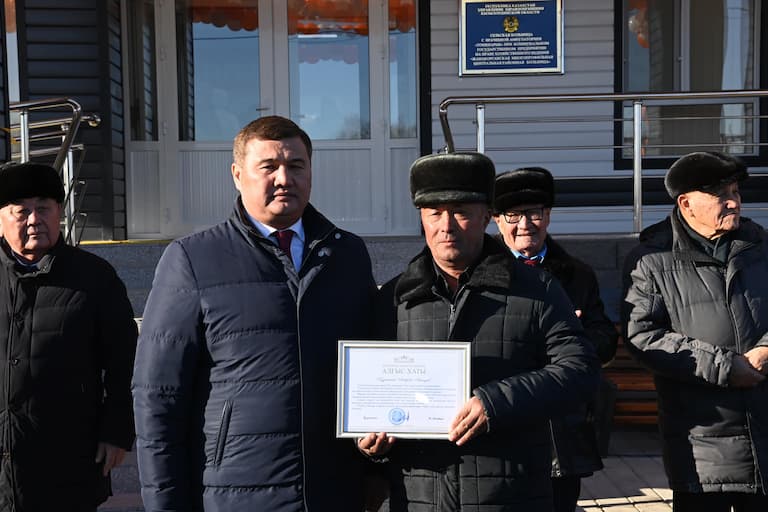 Жиында облыстық ардагерлер кеңесінің төрағасы Серік Дүйсенбаев батасын беріп, еңбек ардагерлері мен құрылысшылар облыс әкімінің Алғыс хатымен марапатталды.