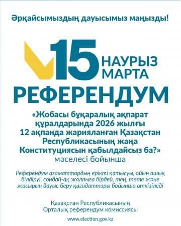 Kyzylorda-news.kz 2026 жылдың 15 наурызында Республикалық референдум өтеді.