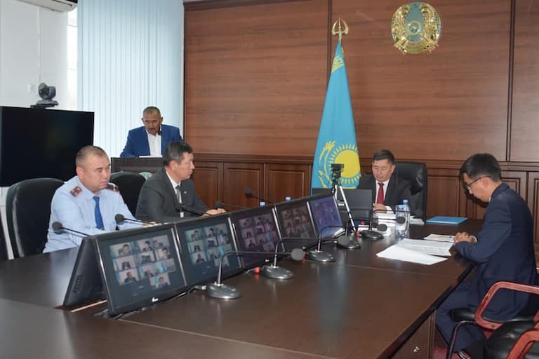 Отырысқа комиссия мүшелері, құқық қорғау органдарының басшылары, бөлім басшылары және кент, ауылдық округі әкімдері бейнебайланыс арқылы қосылып отырды.