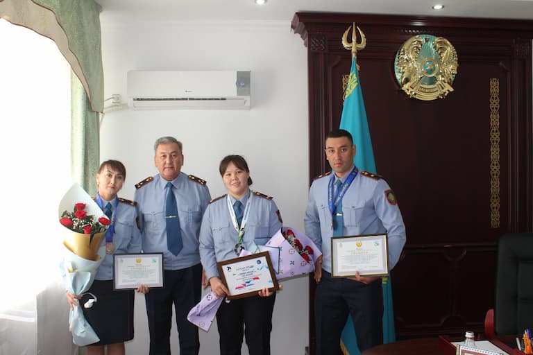 Қызылорда облысы полиция департаментінің бастығы Мұхтар Қожабаев Әлемдік және Республикалық деңгейде Қазақстанның және облысымыздың намысын қорғаған қызметкерлерді жеңістерімен құттықтап, қызметте абырой, отбасыларына амандық тіледі.