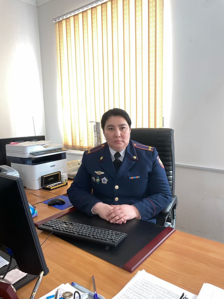 Қазақ гуманитарлық-заң университетін «құқықтану» мамандығы бойынша бітірген соң, ол өз өмірін ІІО қызметімен байланыстыратынын білді. Мамандыққа деген адалдық, іс-әрекеттің ерекшілігі мен қиындықтарына қарамастан адамдарға қызмет етуге деген ұмтылыс, күшті рух біздің кейіпкерімізге тән қасиеттер. Бірнеше рет ҚР ІІМ, Көліктегі ПД грамоталармен марапатталған. 2021 жылдың қорытындысы бойынша көлік өңірі бойынша штабтың үздік бастығы болып танылды. Осы жылдың 8 Наурыз мейрамы қарсаңында ҚР ІІМ бұйрығымен «ішкі істер органдарының үздігі» төсбелгісімен марапатталды.