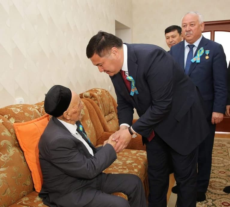 Kyzylorda-news.kz. Ұлы Жеңістің 77 жылдық мерекесінде облыс әкімі Нұрлыбек Нәлібаев аймақтағы 7 соғыс ардагеріне барып, Президент атынан құттықтап, құрмет көрсетті. Алдымен ол Қазалы ауданы, Бекарыстан би ауылында тұратын Ұлы Отан соғысының ардагері Қабақ Смағұлдың шаңырағында болды.