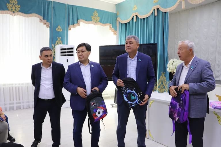 Халық қалаулылары 650 мың теңгеге 130 балаға мектеп сөмкелерін сыйға тартты.