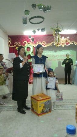 Мазмұнды шара кезінде «Балапан» балабақшасының тәрбиеленушілері «Ана туралы жыр», «Ақ мамам» әнін орындап, «Асатаяқ» биін мың бұрала биледі. Бұдан соң «Өз анаңды тап» ойыны ойнатылды. Онда аналарды тізбектеп қойып, көзі байланған балалар өз аналарының бетін, қолын сипау арқылы табу керек болды. Қызықты ойын соңында балалар аналары мен қыздарға гүл сыйлап, керемет кештің көркін одан әрі ажарландырды.