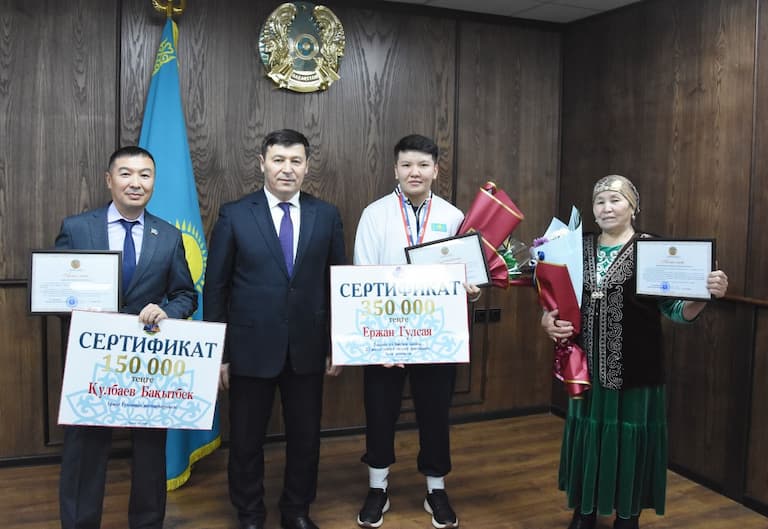 Басқосуда аудан басшысы спортшы мен оның жаттықтырушысы Б.Құлбаевты Алғыс хаттармен марапаттап, сыйақы табыстады. Сондай-ақ, Гүлсаяның әжесі Үржан Ағділдақызына қайсар қыз тәрбиелегені үшін алғыс айтып, сый-құрмет көрсетті.
