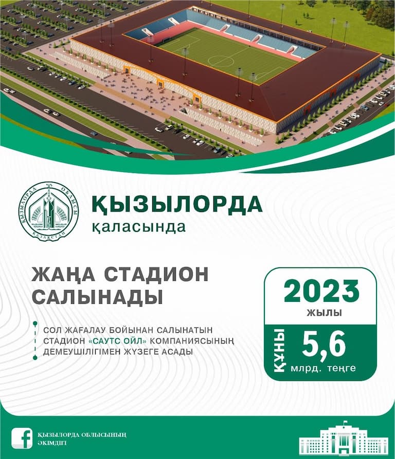 «Қазгермұнай» бірлескен кәсіпорнымен келісім нәтижесінде облыс орталығында заманауи үлгідегі «Оқушылар сарайының» жобасы басталады. 2023 жылы 7 мың адамға арналған «Қайсар» футбол командасының жаңа стадионының құрылысын бастау жоспарда бар. Жаңа стадион құрылысына «Саутс Ойл» компаниясы демеушілік етуге ынта білдіріп, жобалау жұмыстары атқарылуда.