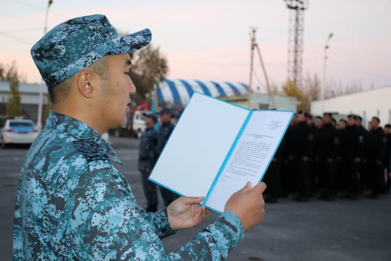 Полиция қызметіне жаңадан қабылданған жас полицейлер қызметті адал және абыроймен атқаруға, Қазақстан Республикасы азаматтарының құқығы мен бостандықтарын қорғауға салтанатты түрде ант берді.