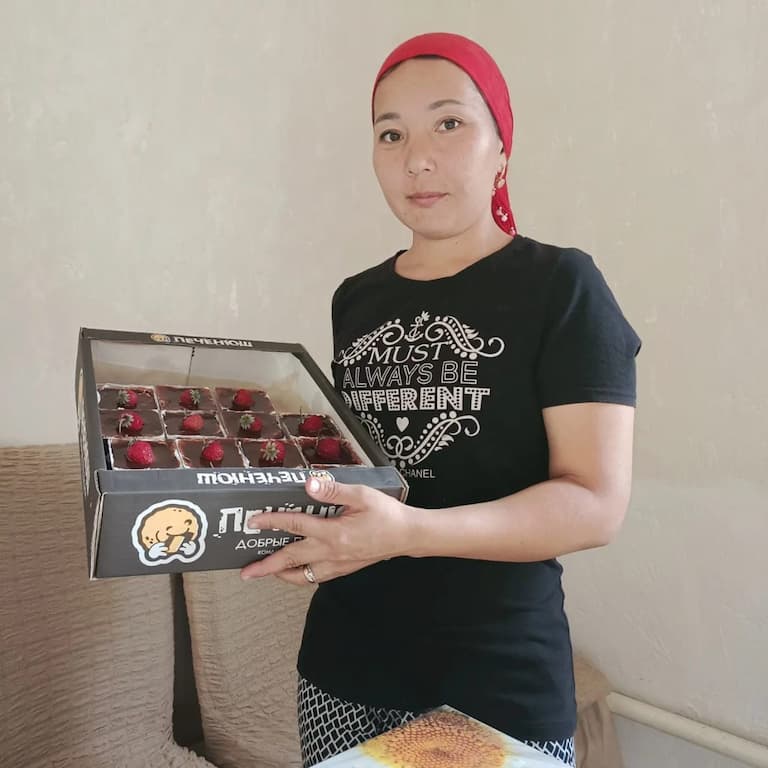 «Өзім көпбалалы отбасында дүниеге келдім. Әкем су шаруашылығы мекемесінде жұмыс істейді. Анам – аспаз. Маған осы өнер анамнан дарыса керек. Тәтті пісіруді бұрыннан жақсы көретінмін. Алғашқыда тек үй ішіне арнап қана жасайтынмын. Кейін келе «тапсырыспен жасап берші» деген сұраныстар көбейді. Үй шаруасындағы ана болған соң балалардың қасында жүріп-ақ тәтті пісіруге деген қызығушылығымды табыс көзіне айналдырғым келді. Жақында ғана кәсіпкерлікке бағытталған «Ұлттық жоба» шеңберінде 1 225 200 теңге қайтарымсыз гранттың иегері атандым. Бүгінде берілген қаражатқа кондитерлік өнім даярлайтын құрал-жабдық алдым. Енді кондитерлік өнімнің барлық түріне тапсырыс қабылдап, жұмыс істеп жатырмын», дейді ол.