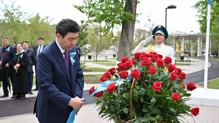 «Ақжайық» саябағында орналасқан монументке гүл шоқтарын қою рәсіміне Парламенттегі фракция жетекшілері мен қала тұрғындары қатысты. Олар ерлікпен қаза тапқан батырларды бір минут үнсіздікпен еске алып, тағзым етті.