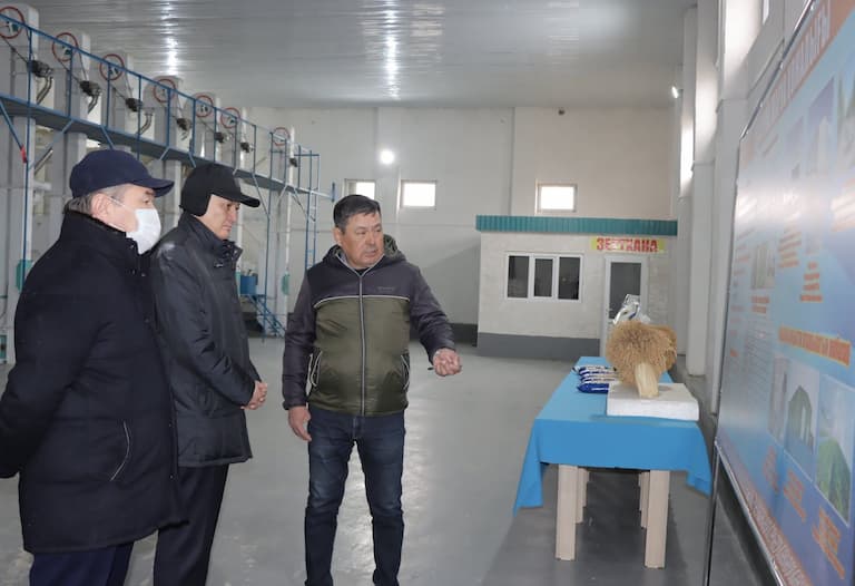 Мемлекеттік инспектор ең алдымен Ақжарма ауылындағы «Ақжарма-2» шаруа қожалығына тиесілі қуаттылығы күніне 50 тонна күріш ақтайтын зауыт жұмысын көрді. Бүгінде кәсіпорын басшысы Марат Бисенов 10 адамды тұрақты жұмыспен қамтуда.