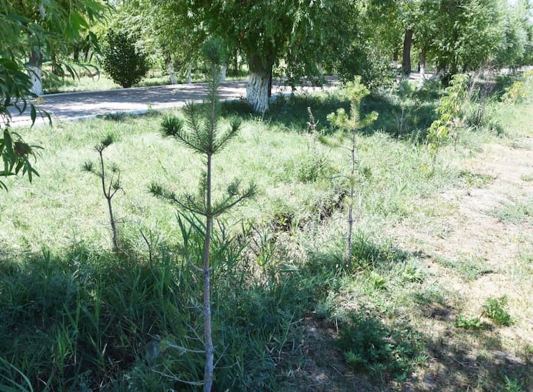 Саябақ ішіне теміржолшылардың қолдауымен шырша ағаштары да жайқалып өсіп тұр. Бұл талдарға жаңбырлатып суару арқылы су беріледі.