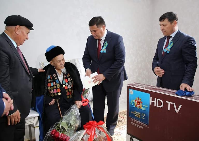 Kyzylorda-news.kz. Ұлы Жеңістің 77 жылдық мерекесінде облыс әкімі Нұрлыбек Нәлібаев аймақтағы барлық соғыс ардагеріне барып, Президент атынан құттықтап, құрмет көрсетті.