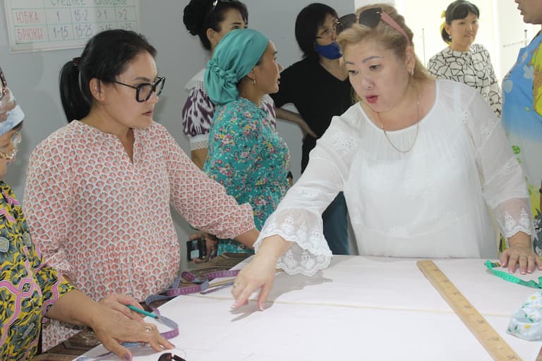 Тігін тігу бағыты бойынша курс жеке кәсіпкер Гүлжан Қуаңбаеваның орталығында өтуде. Гүлжан Амандыққызы осыдан алты жыл бұрын тігін цехын оқу орталығына айналдырып, мемлекеттік тапсырыс аясында жұмыссыз азаматтарды оқытуды қолға алды. Енді міне жоба аясында биыл 25 қыз-келіншекке тігіп-пішуді үйретуде.