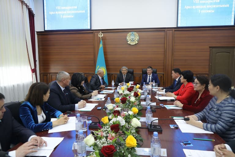 Kyzylorda-news.kz. Арал аудандық мәслихатының VІІІ шақырылымының алғашқы сессиясы өтті. Сессияға аудан әкімі Серік Сермағамбетов, құқық қорғау органдары басшылары, қала, кент және ауыл әкімдері, ардагерлер мен қоғам қайраткерлері қатысты.