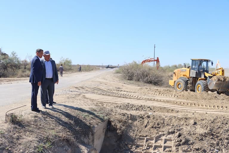 Kyzylorda-news.kz Сырдария ауданының әкімі Берік Сәрменбаев А.Тоқмағанбетов ауылдық округіне қарасты «Айжанкеткен» каналының тоспа бөгетін жөндеу жұмыстарының барысымен танысты.