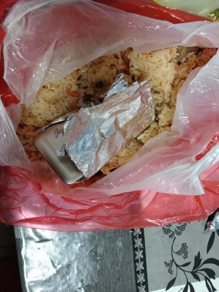 Нақтырақ айтар болсақ, бір реттік қалтаға салынған ыстық палаудың ішінен фальга қағазына оралған 1- дана «HUAWEI» маркалы ұялы телефоны мен 1-дана «билайн» сим картасы табылды.