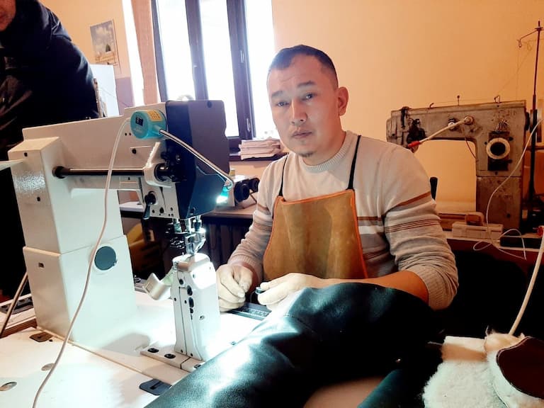 — Тараздық Жанболат деген кісі бар. Сол кісі арнайы шақыртумен әр қалаға келіп теріні илеп кетеді. Одан бөлек отандық «Тұран» атты былғары зауыттың өнімін пайдаланамын. Ал өзге құрал-жабдықтарды Алматы, Шымкент секілді ірі қалалардан тапсырыспен алдырамын.