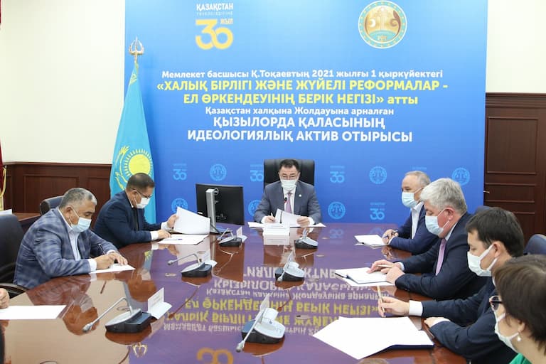 Идеологиялық актив барысында қала әкімі Ғанибек Қонысбекұлы Қызылорданың қарқынды дамуы және қолдауды қажет ететін салалар туралы баяндама жасады.