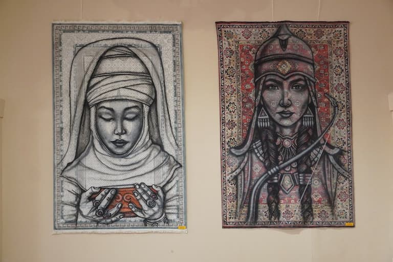 Көрмеде қазақтың белгілі аналары мен арулары бейнеленген 12 кілем-картинасы көпшілік назарына ұсынылды.