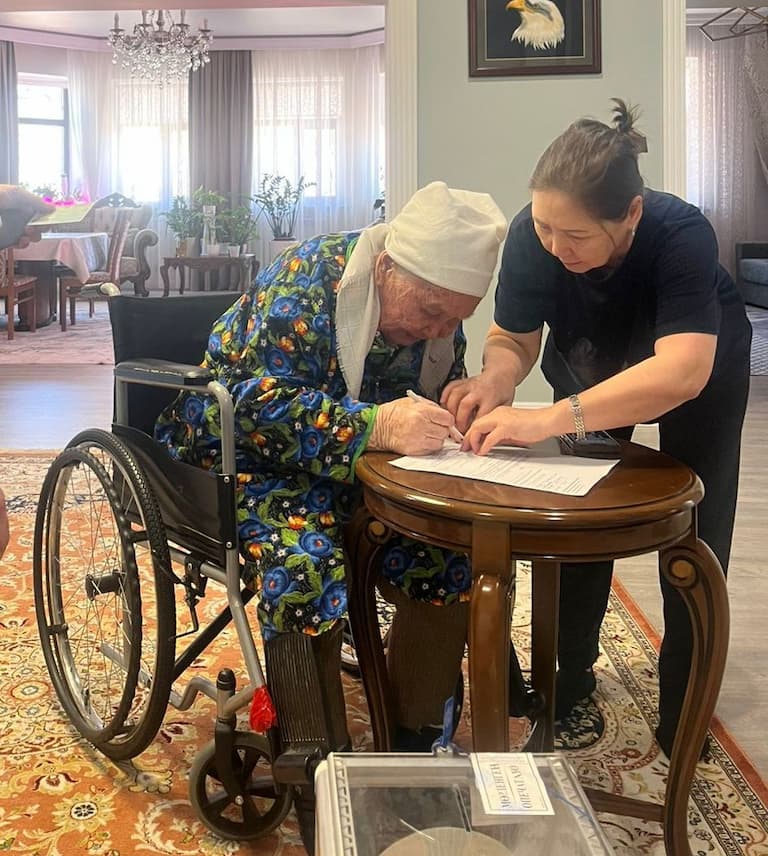 Kyzylorda-news.kz Денсаулық жағдайына байланысты референдум учаскелеріне келе алмаған тұрғындардың дауыс беруіне арнайы жағдай жасалды. Комиссия мүшелері алдын ала түскен өтініштер негізінде арнайы жылжымалы референдум жәшігін алып, азаматтардың үйлеріне барып, дауыс беру процесін ұйымдастырды.