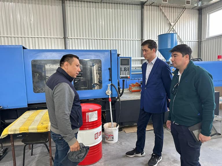 В завершение, А.Зебешев ознакомился с ООО "NP-Consulting", которое с 2014 года производит защитные каски и крышки для 19-литровых бутылей. Цеха оснащены оборудованием из Китая и используют в производстве немецкую технологию. Также сырье привозят из России.