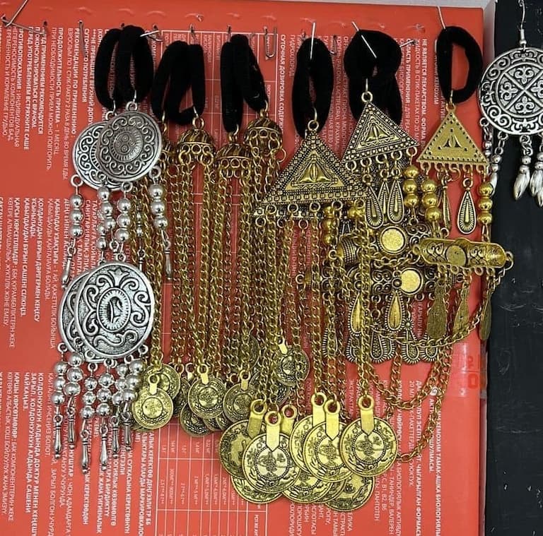 Казахские девушки носят серьги с раннего возраста. Их форма указывает на статус девушки. Незамужняя девушка надевает луновидные серьги и подвески. Замужние женщины тоже могут пользоваться украшениями такой формы, но более крупного размера. Если девушка надевала серьги в виде распустившегося цветка, это становилось подтверждением ее зрелости и готовности к замужеству. Серьги изготавливали из серебряных деталей с национальным орнаментом. Украшали изделие бусинами, подвесками, цветными камнями. Серьги выглядят замечательно. Благодаря форме и красивым подвескам, они подойдут девушкам и женщинам разного возраста. Ученый-историк Сауле Шалгинбаева утверждает, что серьги выступают в качестве обязательного атрибута у казахских женщин. Их дарят маленьким девочкам, невестам и взрослым женщинам по случаю проведения разных праздничных мероприятий и обрядов.