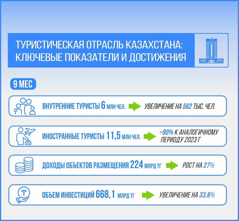 Данные показатели свидетельствуют об эффективности принимаемых мер и возрастающем интересе к Казахстану как к туристскому направлению.