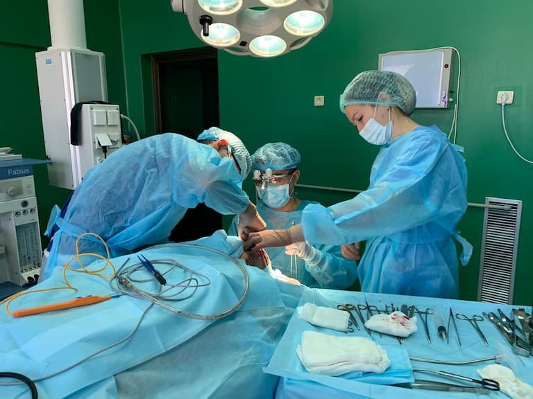 Отмечу, мы работаем в тесном сотрудничестве с Национальным Центром Нейрохирургии г.Астана, Больницей Медицинского центра Управления делами Президента РК, областным медицинским центом г.Караганда, Городской Клинической Больницей №7 г.Алматы. Наши специалисты Абай Пирманулы, Канат Набдинов, Ануар Косбармаков повышают квалифицацию в данных медицинских организациях, совместно проводят сложнейшие операции.