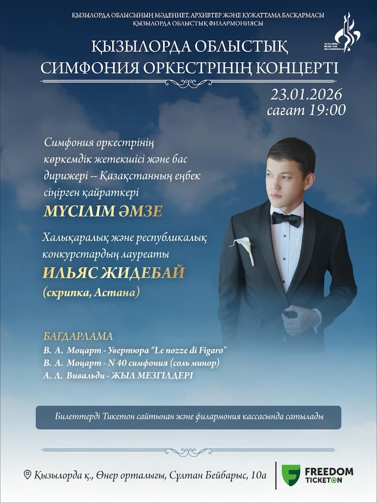 Kyzylorda-news.kz Центр искусств Кызылорды приглашает жителей и гостей города на концерт областного концерт областного симфонического оркестра.