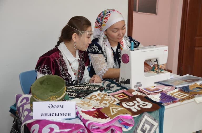 Сегодня всему этому учат в школах педагоги трудового обучения. Гостям семинара представили выставку поделок учителей и учеников, провели мастер-классы, педагоги исполнили песни и кюи, показали работу девочек с мамами по проекту «Іскер ана» и другие.