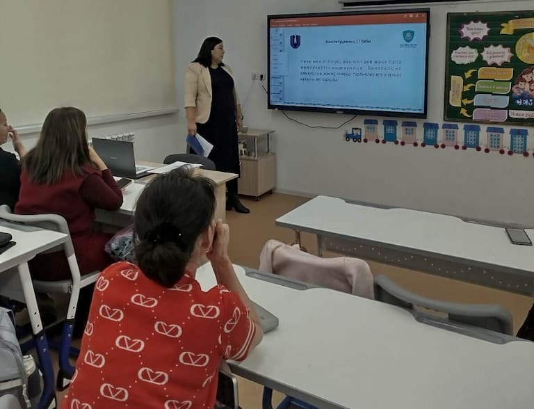 Kyzylorda-news.kz В рамках принципа «Закон и порядок», установленного Указом Президента РК главный специалист представительства Национального центра по правам человека по Кызылординской области К. Мадиева провела встречу с родителями 2 «S» класса, школы имени Абая со специализированными классами для одаренных детей с обучением на трех языках" отдела образования по городу Кызылорда управления образования Кызылординской области.