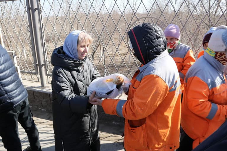 Представители КГУ «Қоғамдық келісім» и чеченского этнокультурного объединения угостили горячими обедами около 100 лиц без определенного места жительства в центре адаптации для временного пребывания, а также кызылординцев, занимающихся уборкой города.