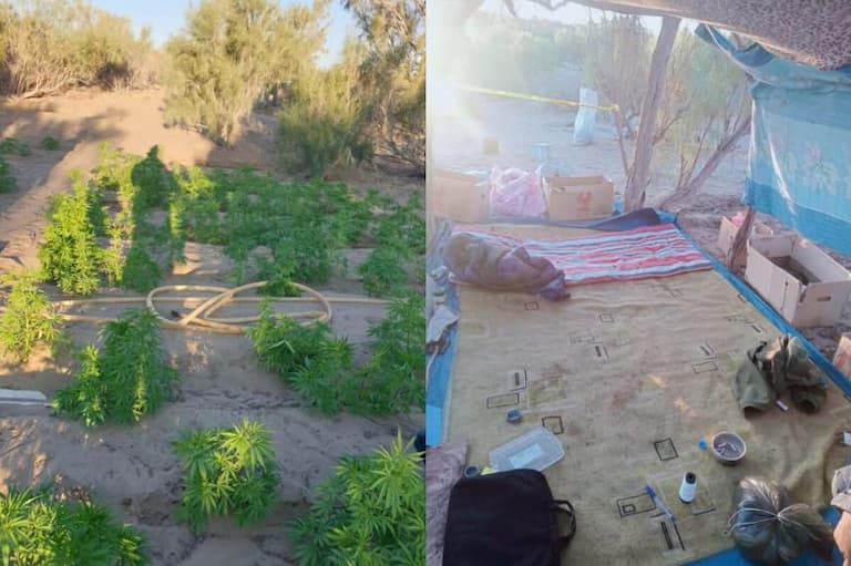 Полицейские, помимо крупного посева, нашли на месте высушенную марихуану, личные вещи подозреваемого, продукты питания, насос, палатку, водяной мотор, 20-метровый шланг, лопату, мотыгу для культивирования и выращивания конопли.