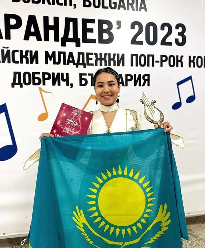 Она поет с пяти лет. В 2011 году стала победительницей ХVІІІ международного конкурса детского творчества «Бозторғай», в следующем году выиграла Гран-при на международном фестивале «Славянский базар» в Витебске (Беларусь), далее были первое место на международном конкурсе «Опус» в городе Льорет-де-Мар (Испания), второе место на республиканском конкурсе «Аялаған Астана». В 2014 году стала обладательницей специального приза фестиваля «IFLC Mozambique» в республике Мозамбик на Юго-Восточном побережье Африки, в 2015 году заняла первое место на международном фестивале тюркоязычных стран «Bala Turkvizyon» в Румынии, дипломант вокальных конкурсов «Colour of the world» в Сан-Паоло в Бразилии, республиканского конкурса «Miss innovation» и других творческих состязаний.