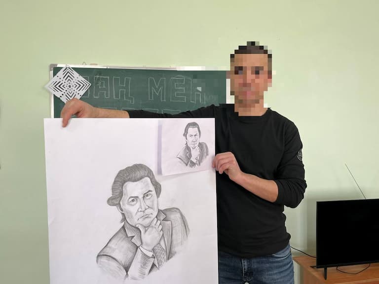 — Я изобразил Мукагали Макатаева — одного из самых ярких представителей казахской поэзии. Его место в казахской литературе особенное, трудно найти человека, который не знал бы его стихов. В этом году, в связи с 95-летием поэта, я решил создать его портрет. Я по профессии художник, поэтому работа не вызвала особых трудностей, хотя рисование всегда требует терпения, — рассказал осуждённый.