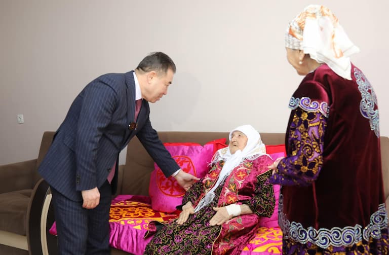 Kyzylorda-news.kz Аким Кызылорды Серик Кожаниязов посетил дом 101-летней соотечественницы Кулмарам Конысбаевой и поздравил ее с Днем благодарности, наступающим Международным женским днем и прошедшим недавно Днем рождения.