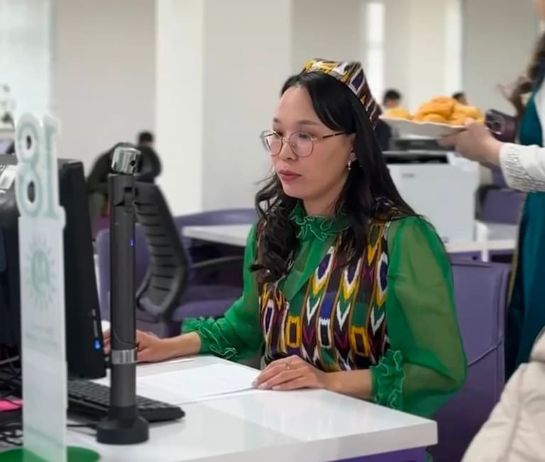 Сотрудники ЦОНов Кызылординской области встречали посетителей в национальных костюмах.