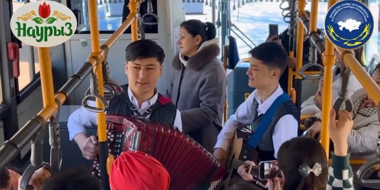 Kyzylorda-news.kz. В Кызылорде в общественном транспорте №11 прошла акция «Наурыз думан», организованная сотрудниками КГУ «Қоғамдық келісім» и студентами института педагогики и традиционного искусства КУ имени Коркыта ата.