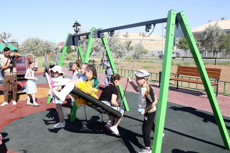 Новая детская площадка стала подарком от РГП «Инфракос» к юбилею Байконура, её открытие продолжило череду праздничных мероприятий в честь 70-летия комплекса.