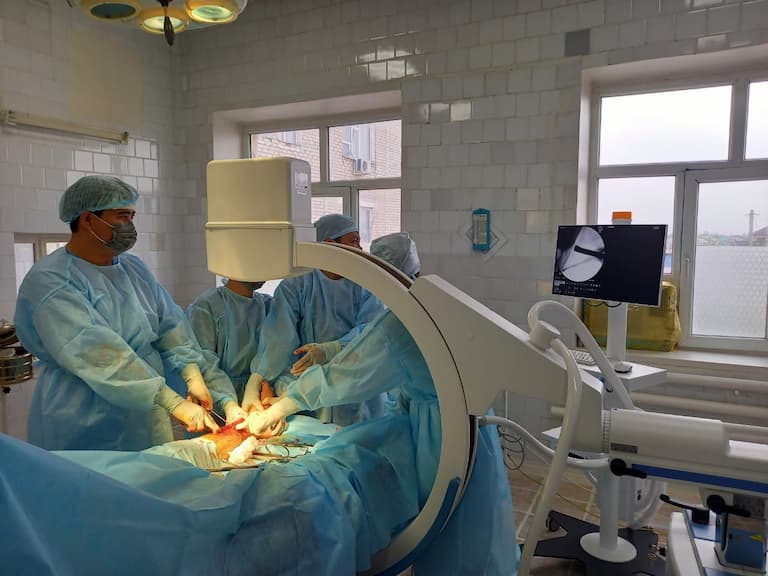 С надеждой на сырдарьинских врачей приехала и частный предприниматель поселка Торетам. Женщина с переломом плечевой кости обращалась к знахарям. Кость неправильно срослась. Хирурги успешно провели плановую операцию по медстраховке. Оба пациента вернулись в строй.