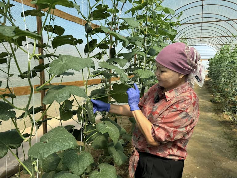 В своем тепличном комплексе Сейсенкуль Кыдырова трудоустроила троих аулчан. В планах предпринимательницы – внедрение непрерывной кампании по сбору урожая и выращивание лимонов.