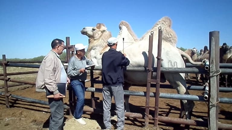 Всего в Кызылординской области почти 40 племенных верблюдоводческих хозяйств, в них содержится 63 тысячи верблюдов. Это третий в республике показатель по количеству. В основном в Казахстане 92 процента выращивают верблюдов породы казахский бактриан. Это двугорбые верблюды. От них получают в основном мясо, молоко, но больше их забивают на мясо. Жир верблюда стоит дороже самого мяса, и он имеет полезные для организма свойства. Шерсть верблюда - ценное сырьё, так как изделия из нее на 100 процентов натуральные и теплые. Молоко верблюда более жирное, чем коровье, ценны благодаря своим диетическим свойствам и кисломолочные продукты из этого молока. В ход идет и шкура верблюда, и даже его навоз. Им топят жилище. Жар от него очень большой и нет дыма.