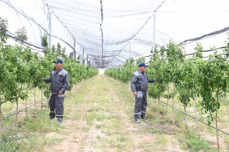 Стоимость яблоневого проекта – 1,6 млрд тенге. Огорожены 120 га земли, из которых на 50 га классическим методом высажено 65 тысяч яблонь. Еще на 30 гектарах 75 тыс. саженцев яблони выращивают интенсивным методом, организовано капельное орошение.